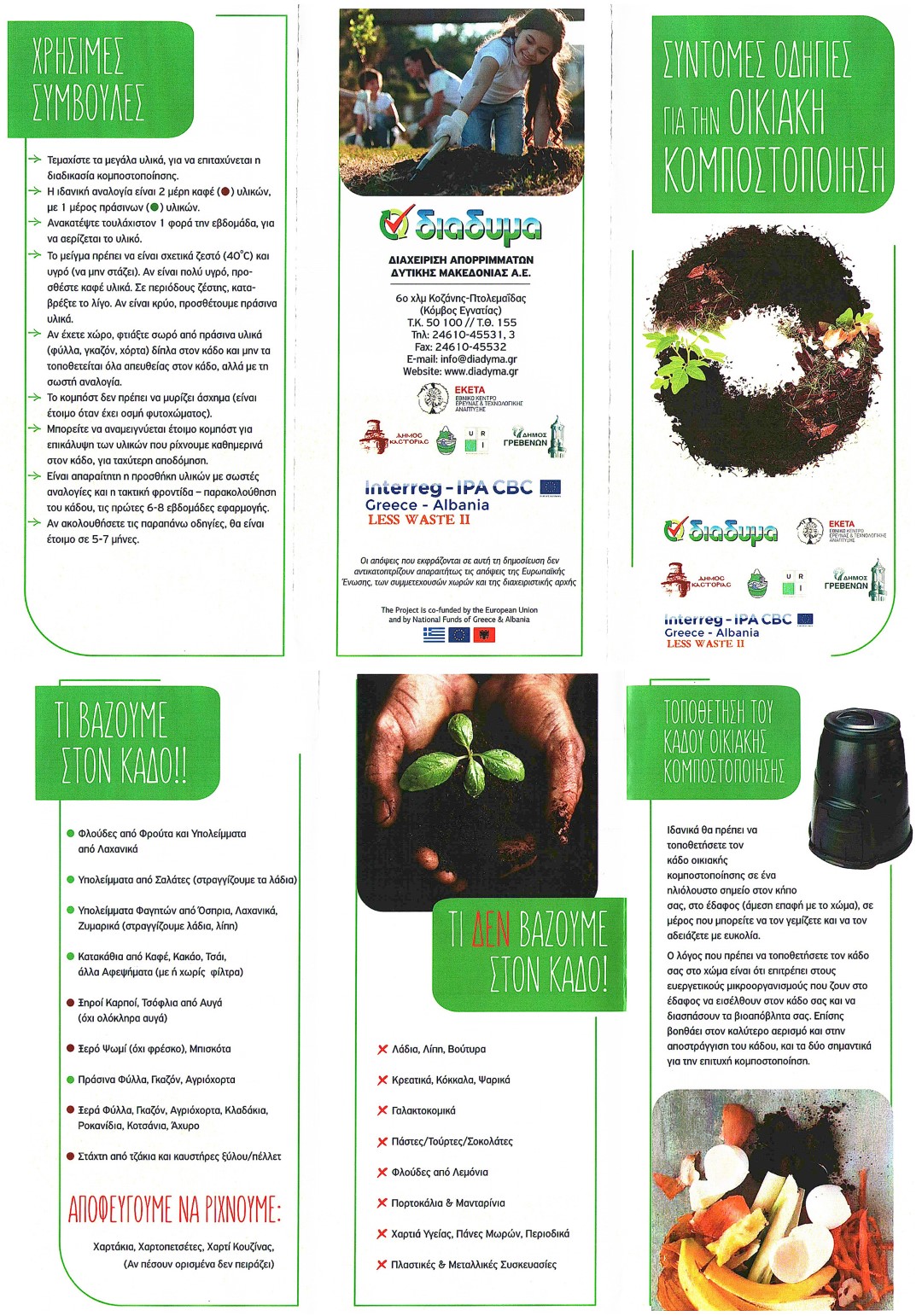 Ο Δήμος Καστοριάς, στο πλαίσιο της προώθησης της οικιακής κομποστοποίησης καθώς επίσης και της προστασίας του περιβάλλοντος, διαθέτει στους δημότες εντελώς δωρεάν κάδους κομποστοποίησης οικιακών απορριμμάτων, με στόχο τη μείωση του όγκου των οικιακών αποβλήτων και την παραγωγή εξαιρετικής ποιότητας λιπάσματος.