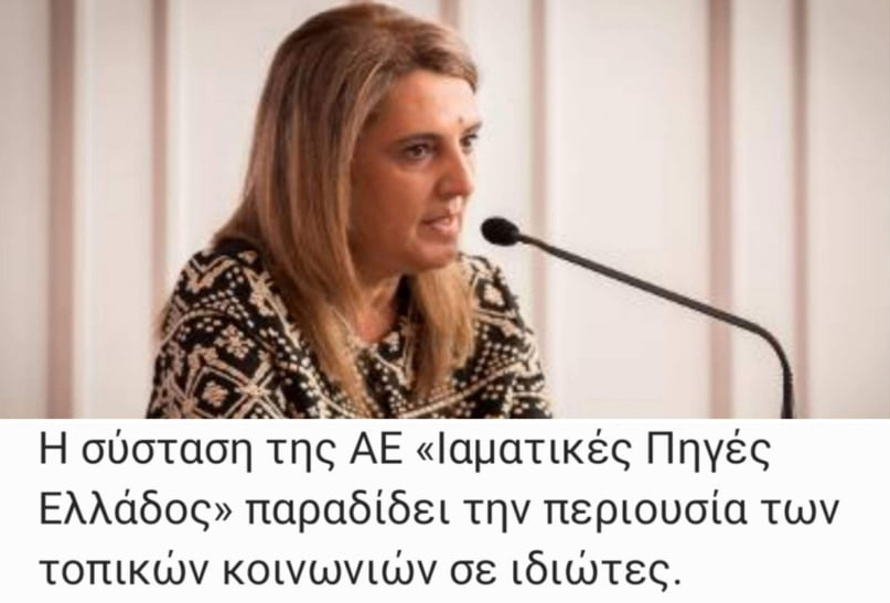 Ολυμπία Τελιγιορίδου: “Η σύσταση της ΑΕ «Ιαματικές Πηγές Ελλάδος» παραδίδει την περιουσία των τοπικών κοινωνιών σε ιδιώτες.”