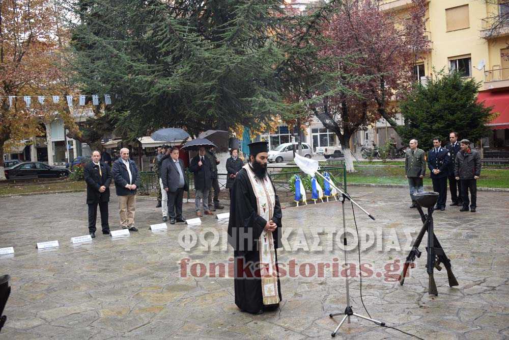 Με την επίσημη Δοξολογία στον Μητροπολιτικό μας Ναό, την Επιμνημόσυνη Δέηση και την κατάθεση στεφάνων, υπό βροχή, στο Μνημείο Ηρώων, παρουσία εκπροσώπων των πολιτικοστρατιωτικών μας αρχών, γιορτάστηκε σήμερα στην Καστοριά, η Ημέρα της Εθνικής Αντίστασης, χωρίς και φέτος, σχετική ομιλία, χωρίς την παρουσία κόσμου, ένας τυπικός, δυστυχώς και πάλι, εορτασμός, που χρόνο με τον χρόνο υποβαθμίζεται, χωρίς να προβληματίζει κανένα.