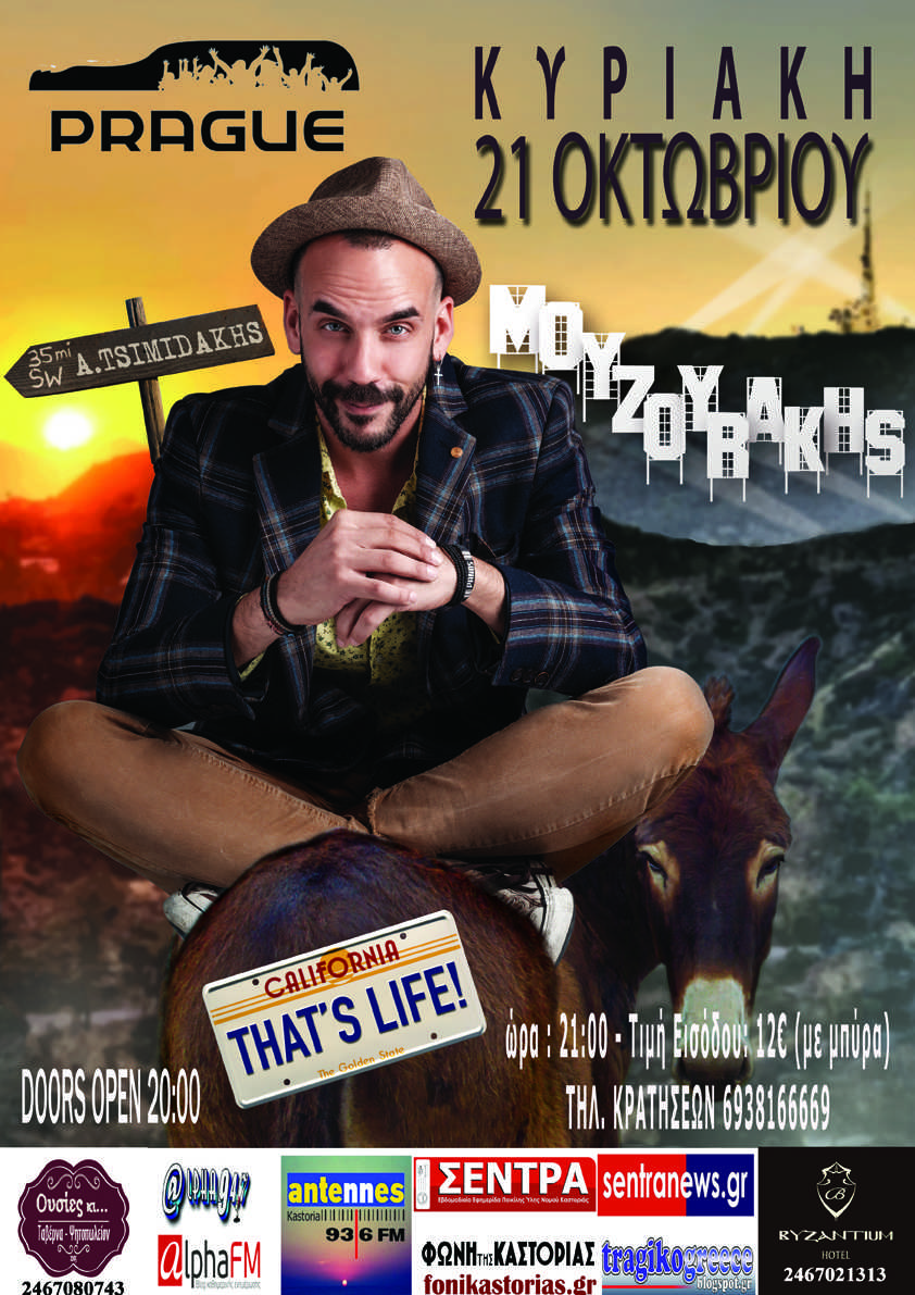 Όπου δηλαδή πετυχαίνουμε και τον Πάνο Μουζουράκη. Στο αλέ και στο ρετούρ. Μπαίνει και βγαίνει από τη χώρα. Με το ένα πόδι να τσαλαβουτάει ακόμα στα νερά του Mamma Mia και το άλλο στις μουσικές σκηνές της Ελλάδας. L.A. – Αθήνα μια παράσταση δρόμος.