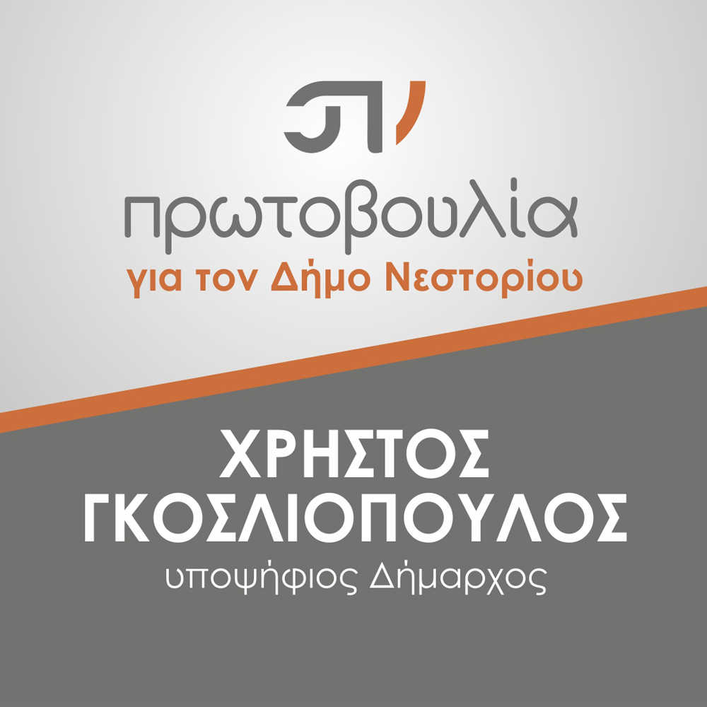 Την παρουσίαση του λογοτύπου, των προγραμματικών στόχων και των υποψηφίων του συνδυασμού του για τον Δήμο Νεστορίου, ανακοίνωσε πρίν από λίγο στα τοπικά ΜΜΕ, ο υποψήφιος Δήμαρχος Νεστορίου Χρήστος Γκοσλιόπουλος, ο οποίος επανέρχεται στην πολιτική ζωή του τόπου, μετά από πέντε χρόνια απουσίας του.