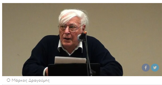 Πέθανε σε ηλικία 89 χρόνων, ο γνωστός μουσικολόγος και βυζαντινολόγος, Μάρκος Δραγούμης, ανιψιός τού Ίωνα Δραγούμη και πατέρας της Ναταλίας Δραγούμη.