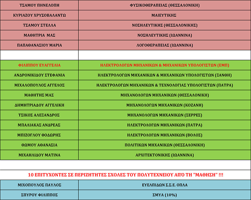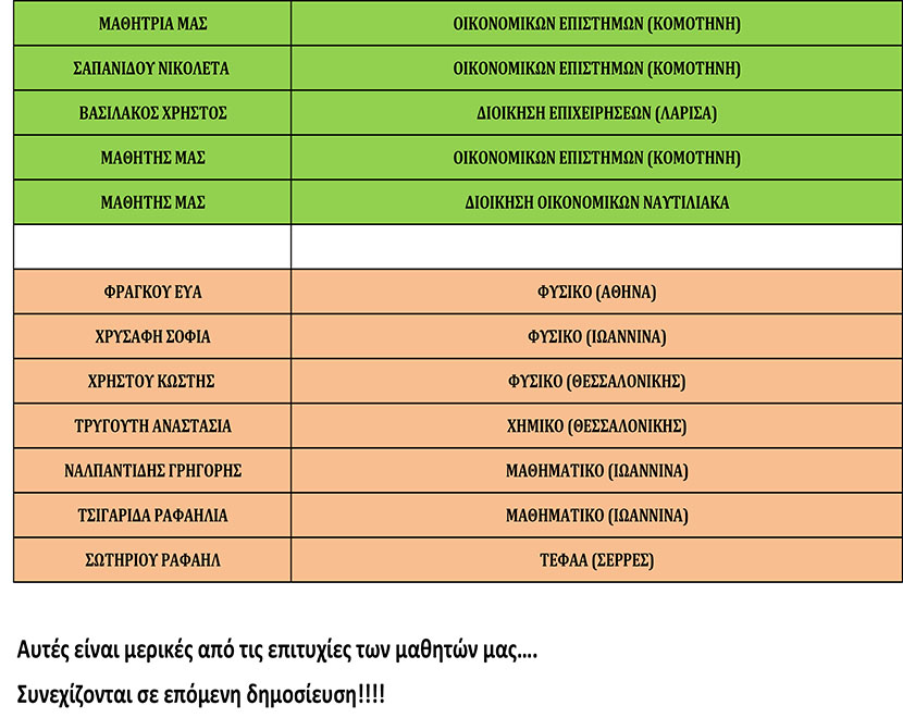 Η παράδοση συνεχίζεται και φέτος με μεγάλες επιτυχίες στην τριτοβάθμια Eκπαίδευση!