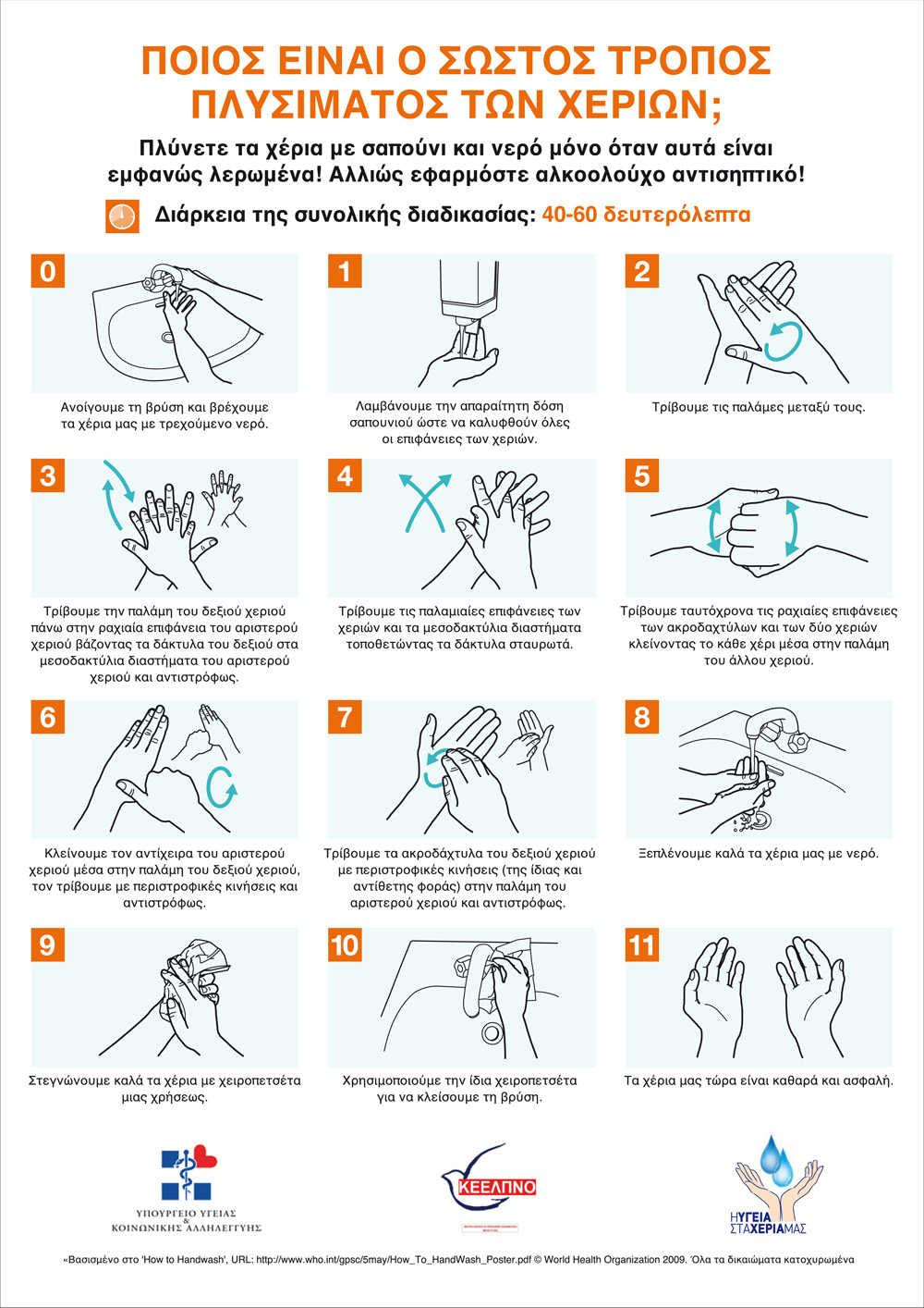 Μετά τη χρήση της τουαλέτας/ αλλαγή πάνας, το χειρισμό μολυσματικού υλικού (εμέσματα ή κόπρανα ,το χειρισμό μολυσμένων με εμέσματα ή διαρροϊκά κόπρανα κλινοσκεπασμάτων, ρούχων, εσωρούχων, πετσετών) την επαφή με κάποιον που έχει συμπτώματα γαστρεντερίτιδας, το χειρισμό τροφίμων