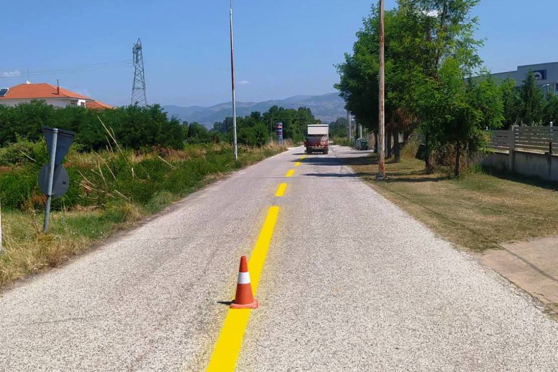 - Διαγράμμιση στην παράκαμψη για την κατασκευή κυκλικού κόμβου στην περιοχή Γκιόλε.
