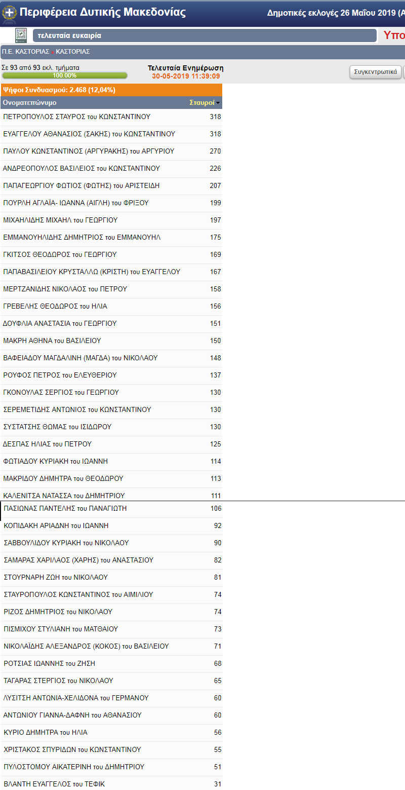 Σύμφωνα με το Τμήμα Εκλογών της Π.Ε. Καστοριάς
