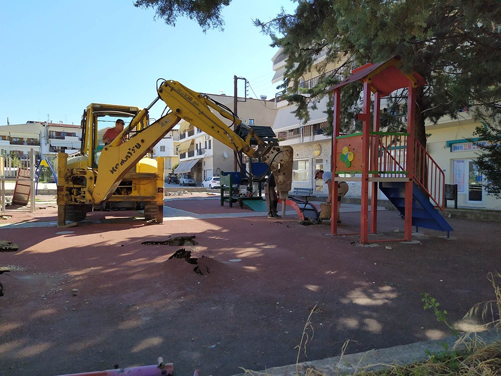 Την ίδια στιγμή ανακατασκευάζεται η παιδική χαρά, πλησίον της Τράπεζας Πειραιώς, ενώ ήδη, εδώ και δύο χρόνια, έχουν ανακατασκευαστεί οι παιδικές χαρές στις Κοινότητες του Δήμου με πιστοποιημένα όργανα.