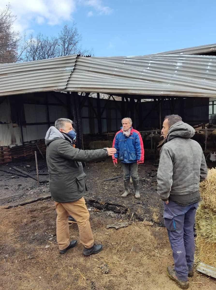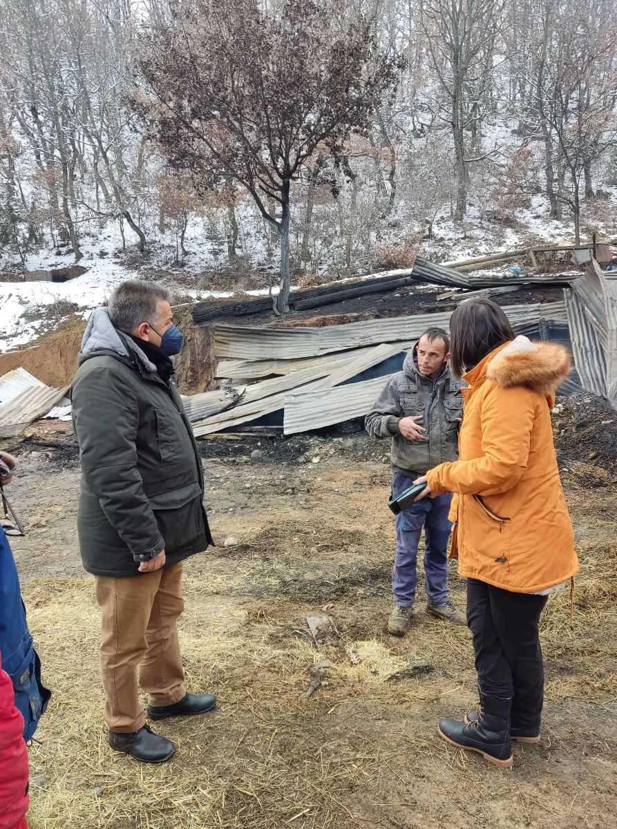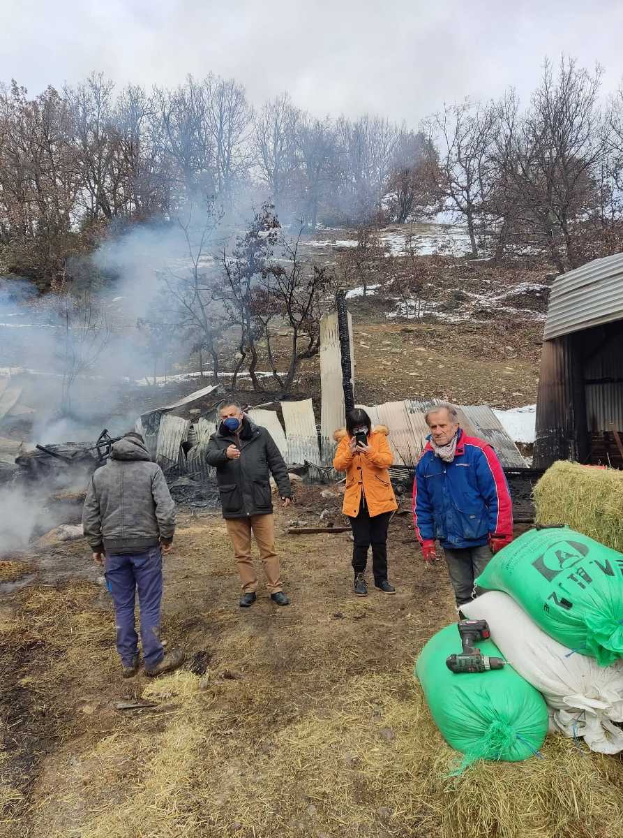 Η Αντιπεριφερειάρχης Καστοριάς Δέσποινα Κοζατσάνη με τον Αντιπεριφερειάρχη Πολιτικής Προστασίας, Επιπτώσεων Κλιματικής Αλλαγής, Περιβάλλοντος και Υποδομών Θωμά Μάνο, βρέθηκαν άμεσα στην Πτελέα, σήμερα Σάββατο 29 Ιανουαρίου 2022, για να συμπαρασταθούν στους ιδιοκτήτες της κτηνοτροφικής μονάδας, η οποία καταστράφηκε από φωτιά που ξέσπασε τα ξημερώματα.