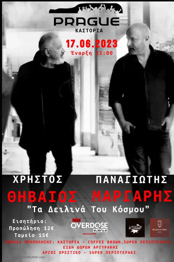 Το live του Χρήστου Θηβαίου και του Παναγιώτη Μάργαρη μεταφέρετε στο Prague και όχι στο Θέατρο Βουνού Καστοριάς.