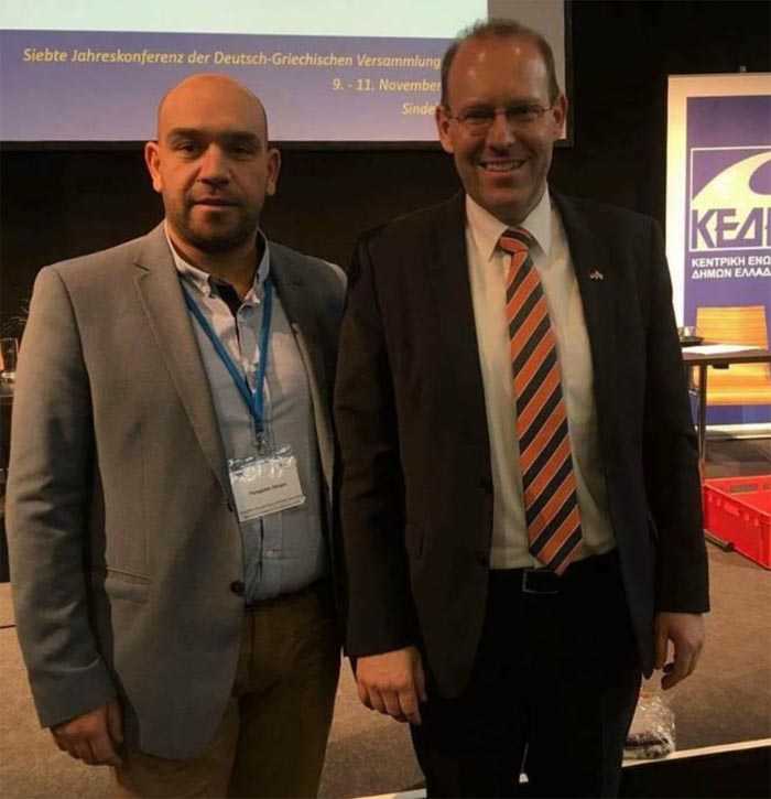 Ο Αντιδήμαρχος Αγροτικών Θεμάτων με τον Υφυπουργό Οικονομικής Συνεργασίας και Ανάπτυξης της Γερμανίας και εντεταλμένος για την ελληνογερμανική συνέλευση, Χανς Γιόαχιμ Φούχτελ και τον πρώην Δήμαρχο Franz Mozer