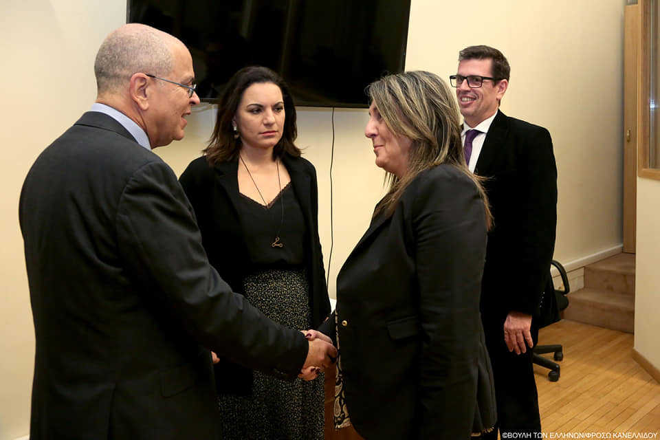 Συνάντηση πραγματοποιήθηκε σήμερα Δευτέρα 16 Δεκεμβρίου 2019 στη Βουλή μεταξύ του Προεδρείου της Κοινοβουλευτικής Ομάδας Φιλίας Ελλάδας-Ισραήλ και του Πρέσβη του Ισραήλ στην Αθήνα, κ. Yossi Amrani. Στην συνάντηση συζητήθηκαν σε πολύ καλό κλίμα θέματα σχετικά με τη συνέχιση και ενδυνάμωση των σχέσεων των δύο χωρών.
