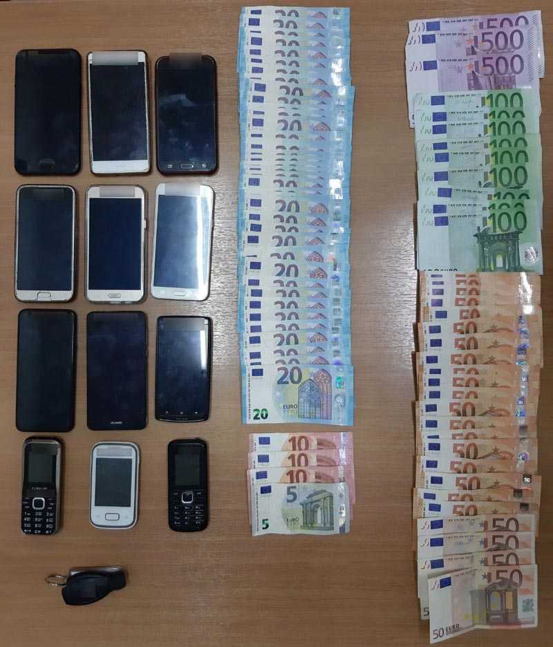 Κατασχέθηκαν το Ι.Χ.Ε. όχημα, (12) κινητά τηλέφωνα, (16) κάρτες sim και το χρηματικό ποσό των 4.385 ευρώ.