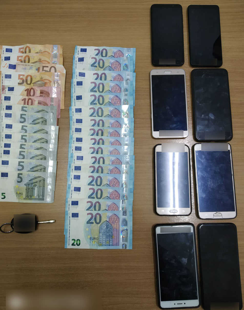 Κατασχέθηκαν το ανωτέρω Ι.Χ.Ε. αυτοκίνητο που χρησιμοποιήθηκε για τη μεταφορά, το χρηματικό ποσό των 580 ευρώ, 8 κινητά τηλέφωνα και 14 κάρτες SIM.