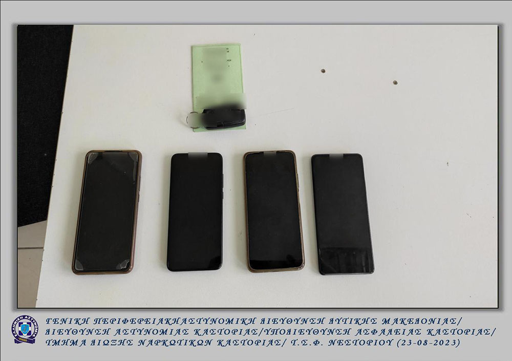 Κατασχέθηκαν το ανωτέρω Ι.Χ.Ε. αυτοκίνητο που χρησιμοποιήθηκε για τη μεταφορά, -4- κινητά τηλέφωνα και -6- κάρτες sim.