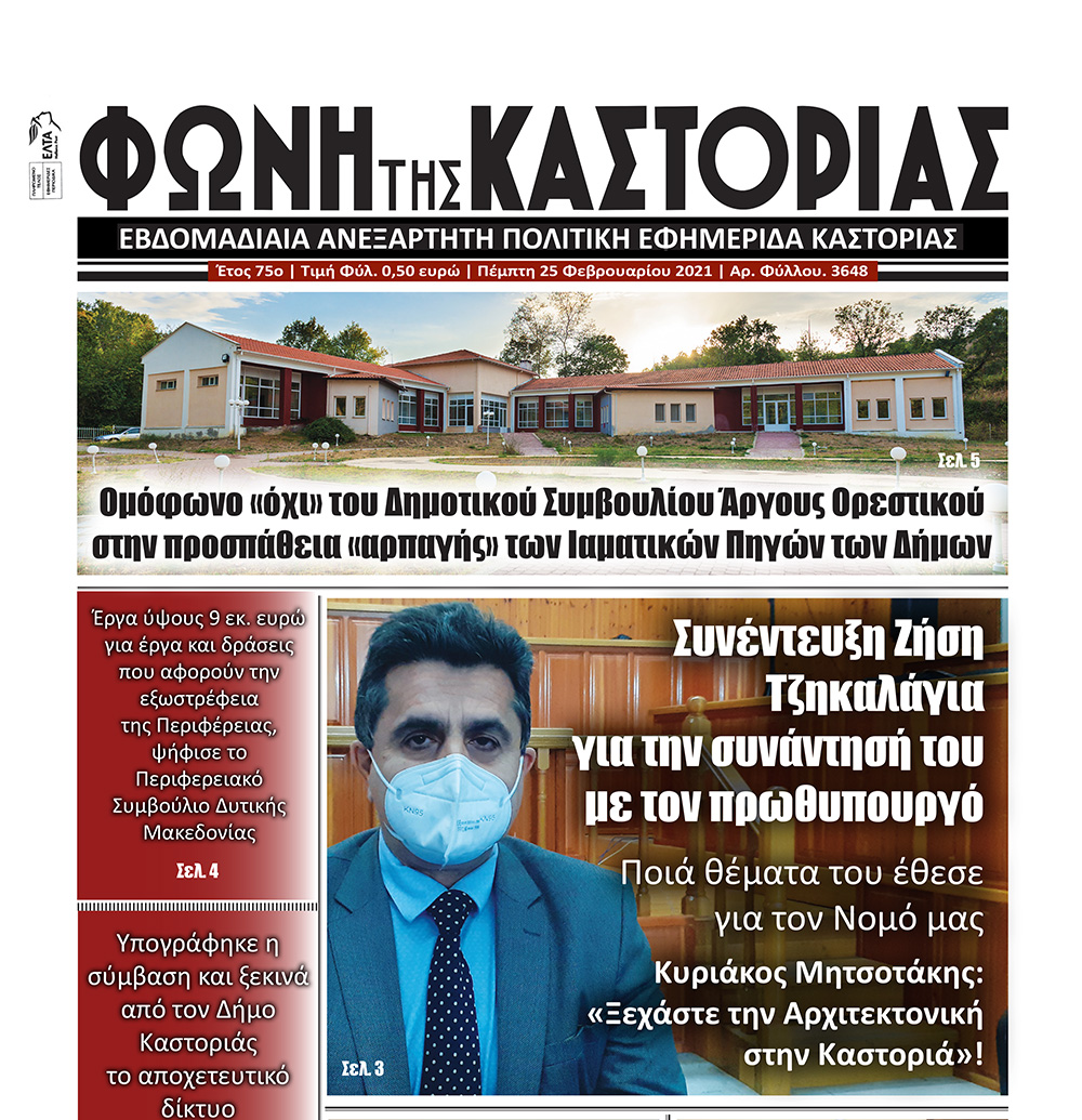 Το πρωτοσέλιδο της εφημερίδας μας “ΦΩΝΗ ΤΗΣ ΚΑΣΤΟΡΙΑΣ” | 25 – 02 – 2021