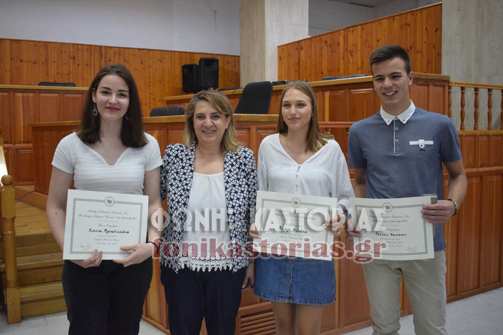 H Περιφερειακή Ενότητα Καστοριάς σε συνεργασία με τον Σύλλογο Καστοριέων «ΟΜΟΝΟΙΑ» Νέας Υόρκης και την Δευτεροβάθμια Εκπαίδευση Καστοριάς, πραγματοποίησε σήμερα το πρωΐ στην αίθουσα του αμφιθεάτρου της Π.Ε. την καθιερωμένη τελετή Απονομής Βραβείων Αριστούχων (τιμητικοί έπαινοι και χρηματικά βραβεία από τον  Συλ. Καστοριανών «ΟΜΟΝΟΙΑ» Ν.Υόρκης, συνοδευόμενα με αναμνηστικά από την Π.Ε. Καστοριάς) τελειοφοίτων των Γενικών, Εσπερινών και Επαγγελματικών Λυκείων της Περιφερειακής Ενότητας Καστοριάς.