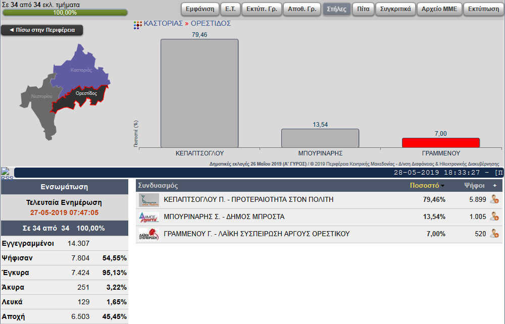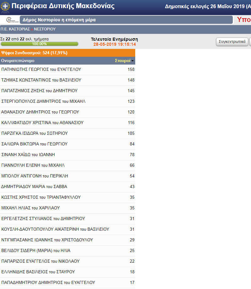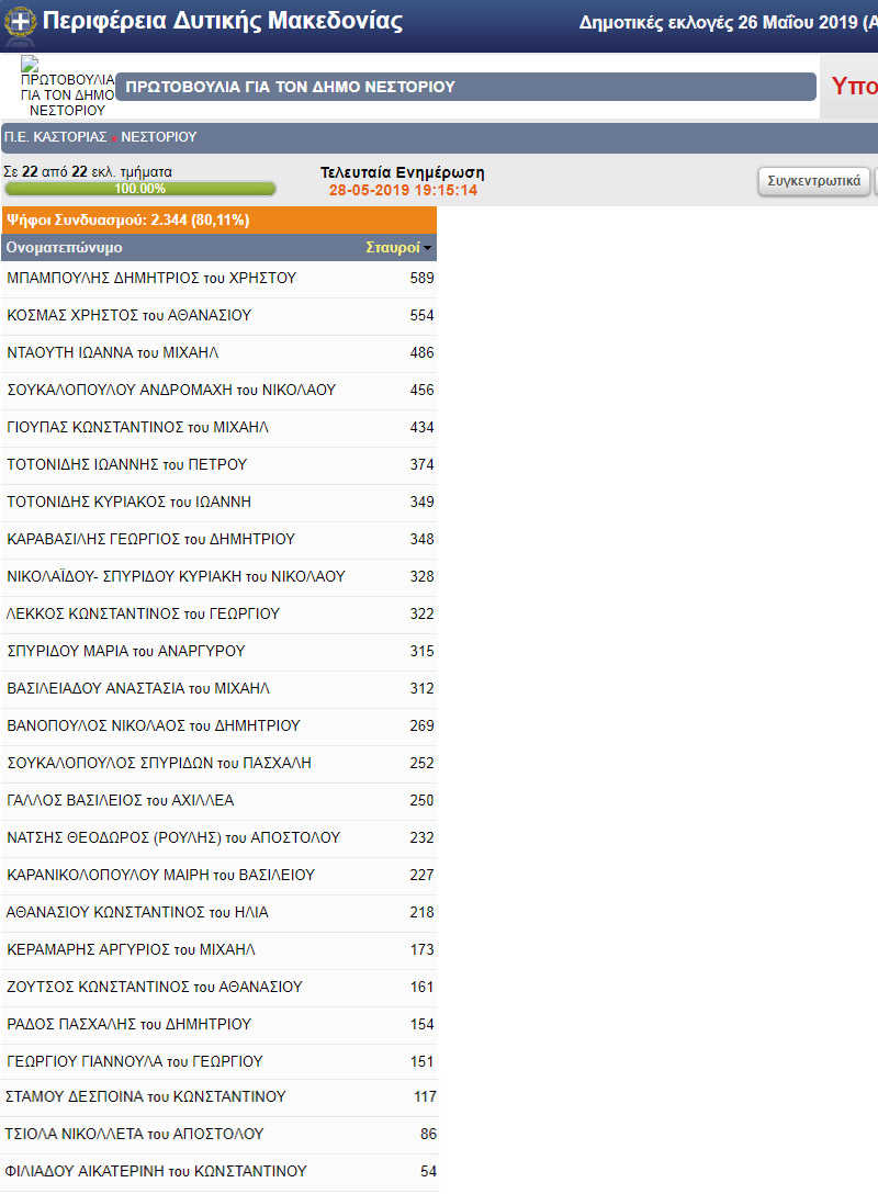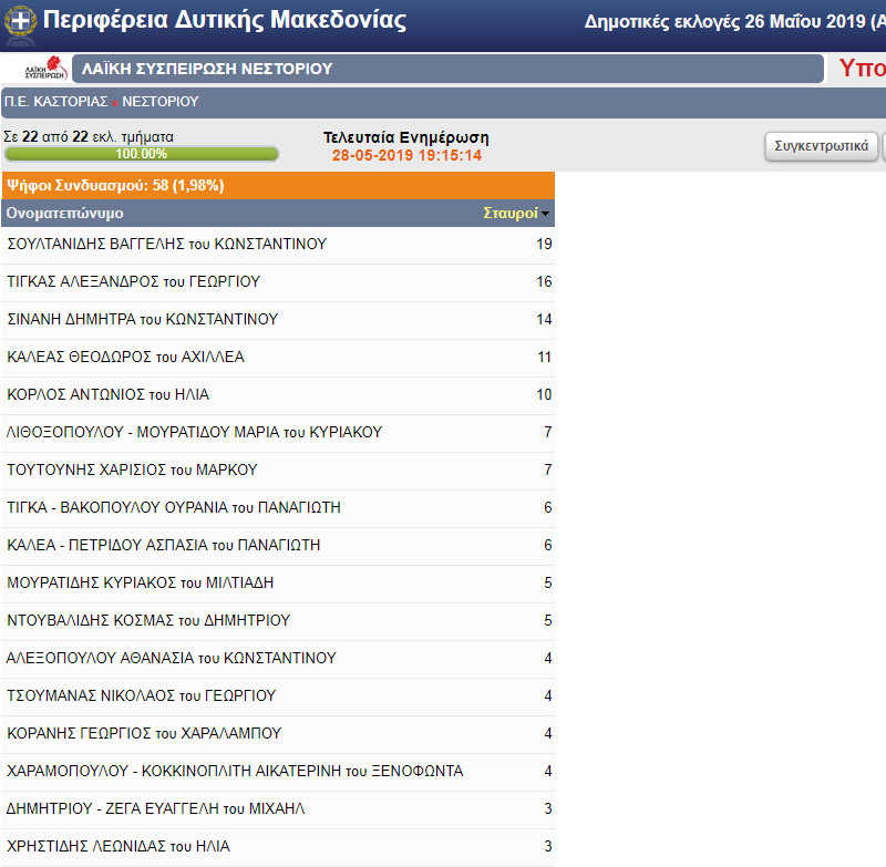 Τελικοί σταυροί προτίμησης υποψηφίων Δημοτικών Συμβούλων στον Δήμο Άργους Ορεστικού
