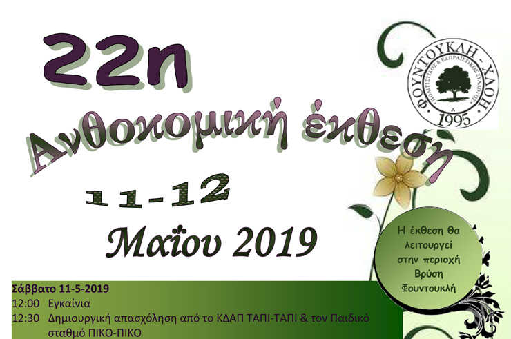 22η Ανθοκομική Έκθεση του Π.Ε.Συλλόγου Φουντουκλή-Χλόης (πρόγραμμα)