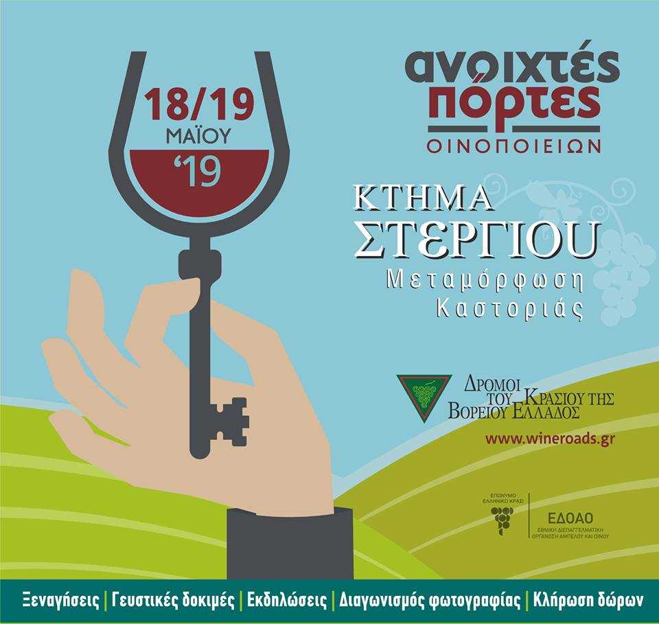Το Σάββατο 18 και την Κυριακή 19 Μαΐου το Κτήμα Στεργίου ανοίγει τις πόρτες του, από τις 11 το πρωί έως τις 7 το απόγευμα, για ξεναγήσεις, γευστικές δοκιμές και παράλληλες εκδηλώσεις με ελεύθερη είσοδο.