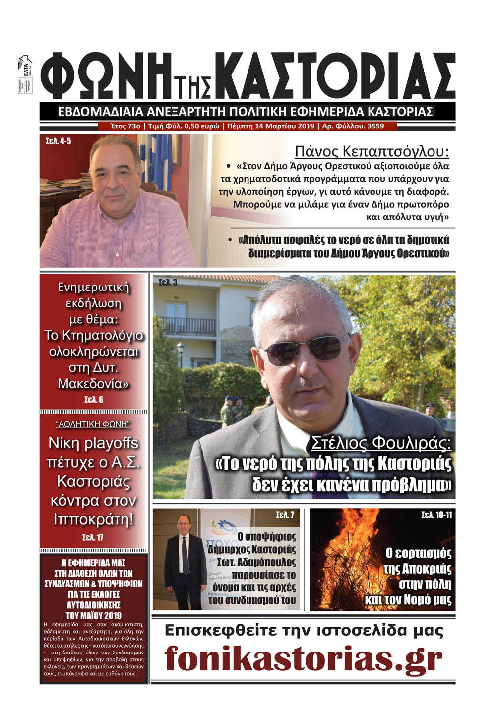 Τροποποιείται η ώρα αναχώρησης προς & από ΘΕΣΣΑΛΟΝΙΚΗ ως εξής : ΚΑΣΤΟΡΙΑ – ΘΕΣΣΑΛΟΝΙΚΗ 08:00 –