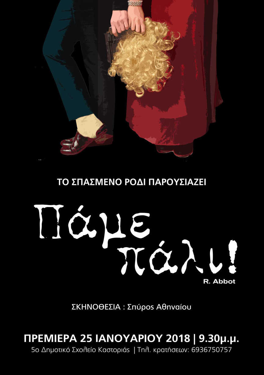 Το “Πάμε πάλι!” (Play On) του Rick Abbot είναι μια αγγλική φλεγματική κωμωδία, διασκευασμένη και σαφώς προσαρμοσμένη από το Σπασμένο Ρόδι, που υπόσχεται να κρατήσει αμείωτο το ενδιαφέρον του θεατή προκειμένου να διαπιστώσει τα όρια της ανθρώπινης υπομονής και να τον κάνει να επικοινωνήσει το ανεπικοινώνητο.