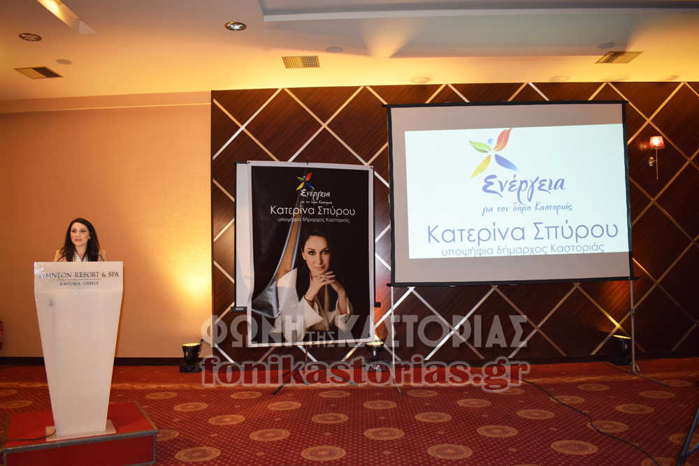 Το όραμα, τις αρχές, τους στόχους και το έμβλημα του συνδυασμού της παρουσίασε η υποψήφια δήμαρχος Καστοριάς Κατερίνα Σπύρου, κατά τη διάρκεια εκδήλωσης η οποία πραγματοποιήθηκε σήμερα το απόγευμα, στην κατάμεστη από κόσμο αίθουσα του ξενοδοχείου «LIMNEON».