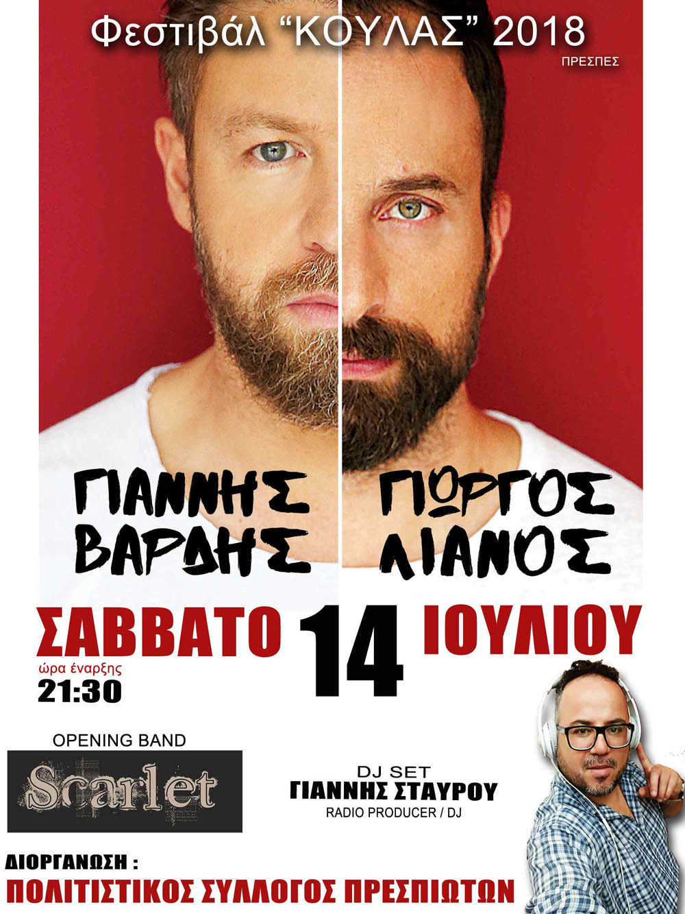 | Κεντρική συναυλία: Γιάννη Βαρδής – Γιώργος Λιανός | 22:30-01:00 |
