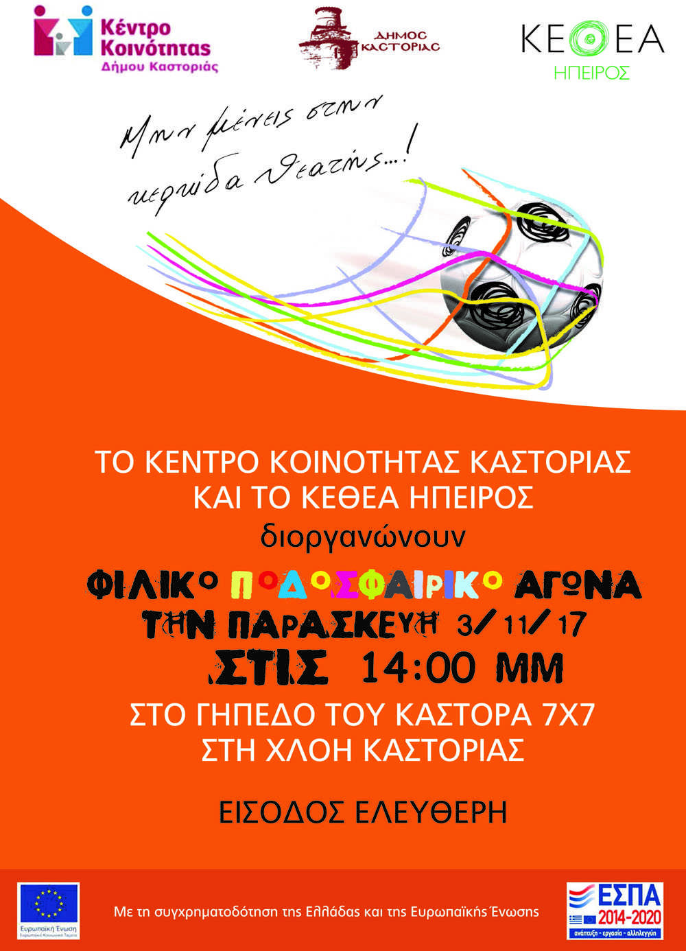 Ο αγώνας θα διεξαχθεί την Παρασκευή 3/11/2017 στις 14:00 μ.μ. στο γήπεδο 7Χ7 του ΚΑΣΤΟΡΑ στην Χλόη Καστοριάς.
