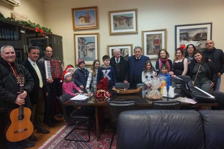 Τέλος, οι σπουδαστές του Δημοτικού Ωδείου “Δημήτριος Μπαϊρακτάρης & Σουλτάνα Πετσάλνικου Μπαϊρακτάρη”, τραγούδησαν μελωδικά κάλαντα και Χριστουγεννιάτικα τραγούδια στον Δήμαρχο, υπό τη συνοδεία μουσικών οργάνων.