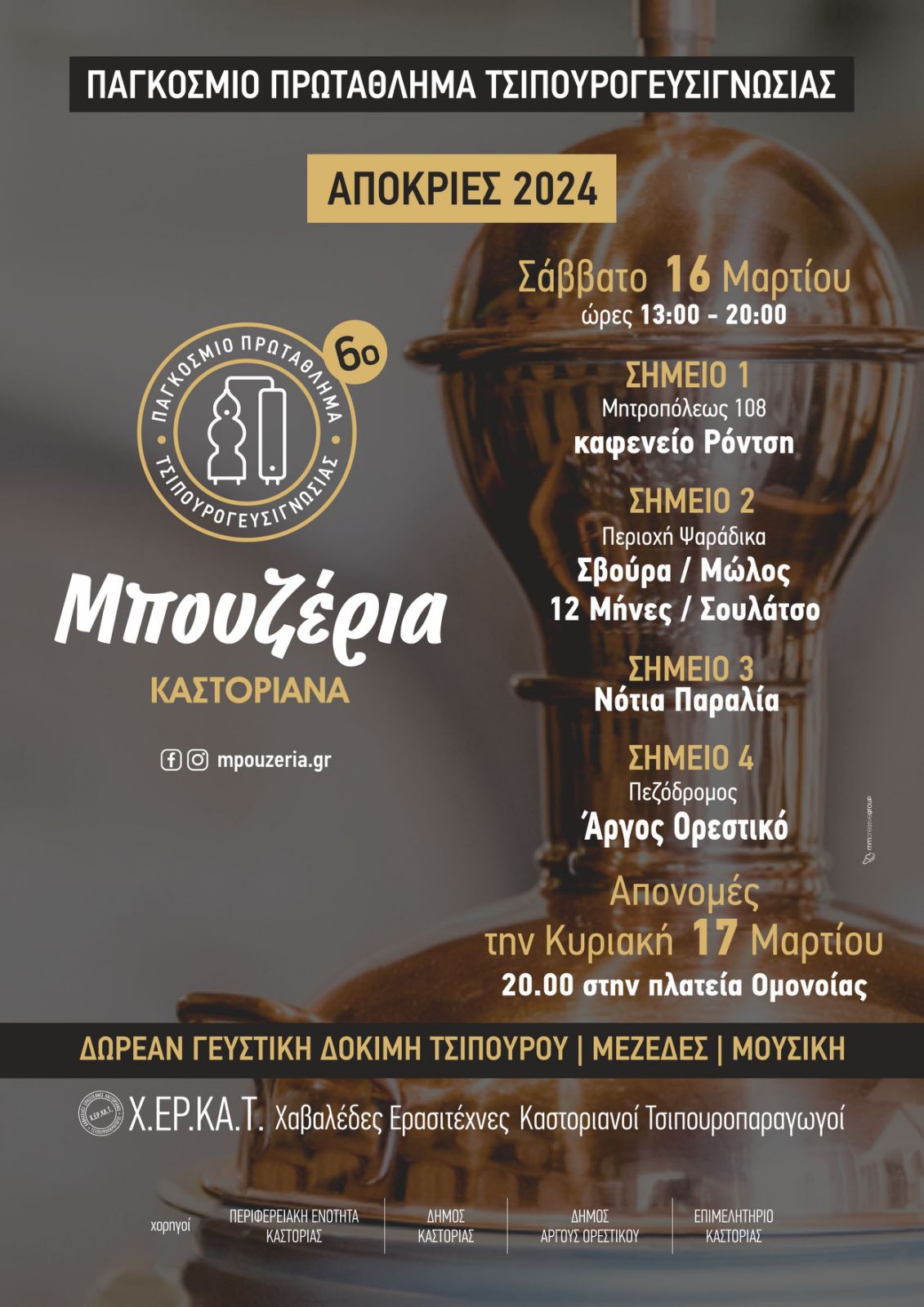 Όλα έτοιμα για το 6ο Παγκόσμιο Πρωτάθλημα Τσιπουρογευσιγνωσίας των Χ.ΕΡ.ΚΑ.Τ. “Μπουζέρια Καστοριανά” 2024!