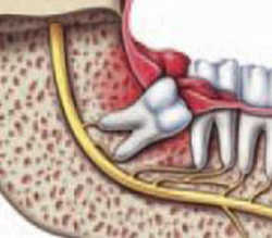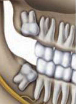 • Ο έγκλειστος φρονιμίτης πολύ συχνά χαλάει το διπλανό δόντι που πιέζει ή απορροφάει τη ρίζα του. Καταστροφή διπλανού δοντιού