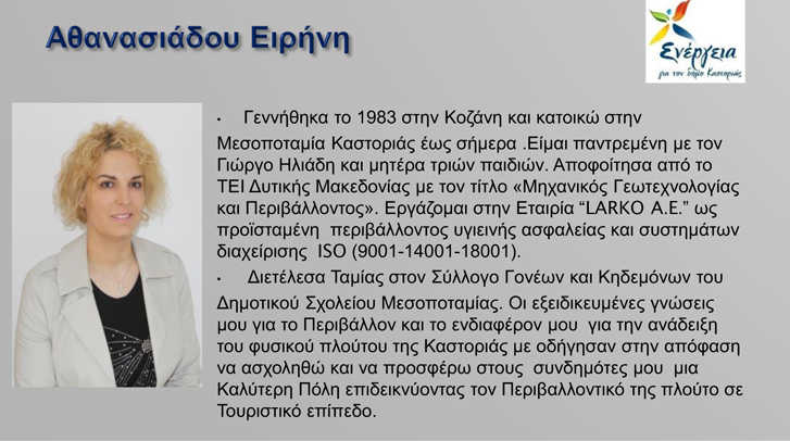 Γραφείο Τύπου υποψήφιας Δημάρχου Καστοριάς Κατερίνας Σπύρου