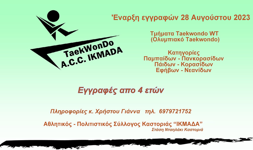 Α.Π.Σ. ΙΚΜΑΔΑ: Ξεκινούν οι εγγραφές στα τμήματα Taekwondo WT στις 28 Αυγούστου!