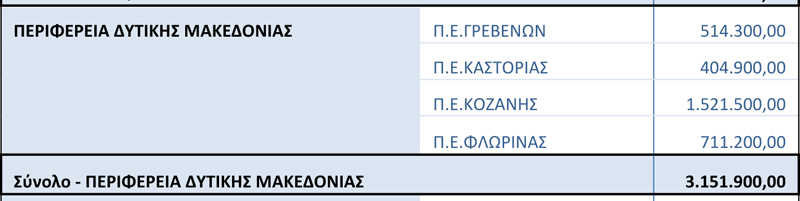 Με χρέωση του λογαριασμού του Υπουργείου Εσωτερικών που τηρείται στο Ταμείο Παρακαταθηκών και Δανείων με τον τίτλο «Κεντρικοί Αυτοτελείς Πόροι των Περιφερειών», η χρηματοδότηση που αποδίδεται στην δικαιούχο Περιφέρειά μας, ανέρχεται στο ποσό των 3.151.900,00€ και κατανέμεται ως εξής: