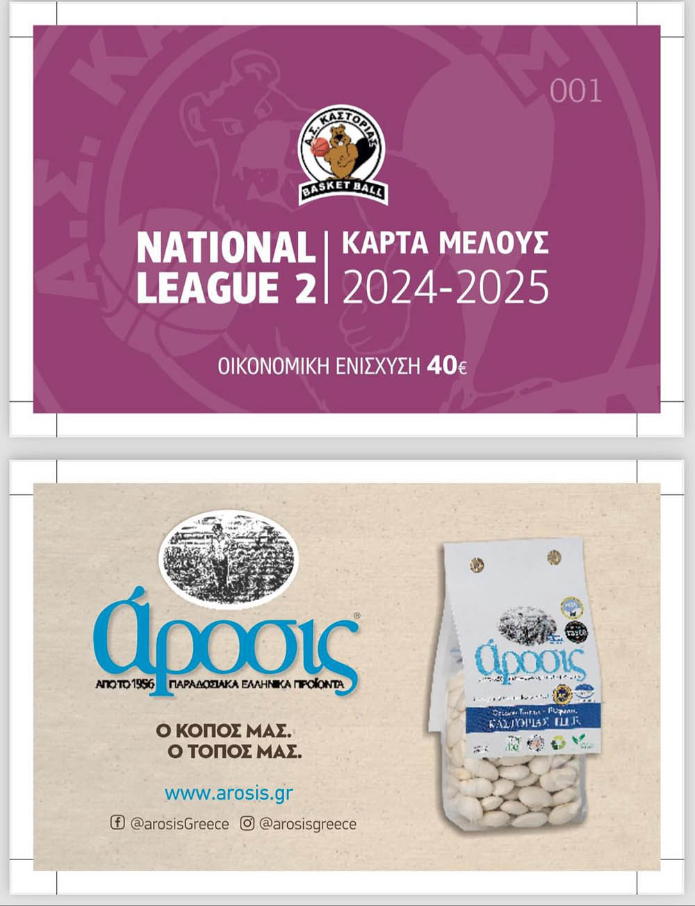 Σας ενημερώνουμε ότι, στην είσοδο του γηπέδου θα διατίθενται οι κάρτες διαρκείας – οικονομικής ενίσχυσης για τους φιλάθλους που επιθυμούν να τις αγοράσουν.