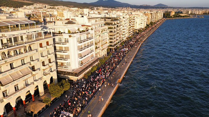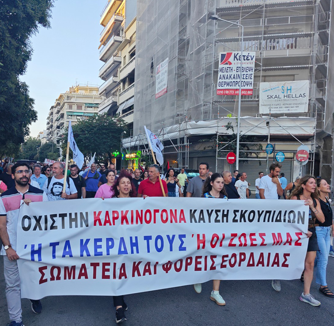 Τα συνθήματα «Η καύση και τα κέρδη τους μαυρίζουν τη ζωή μας, αντίσταση και αγώνας η απάντησή μας» και «Η δίκαιη ανάπτυξη είναι ένα ψέμα, φτώχεια, ανεργία, πανάκριβο το ρεύμα» που ήχησαν στους δρόμους της Θεσσαλονίκης, ενώθηκαν με τις φωνές χιλιάδων που αγωνίζονταικόντρα στην πολιτική που θυσιάζει τη ζωή του λαού για την κερδοφορία των ομίλων.