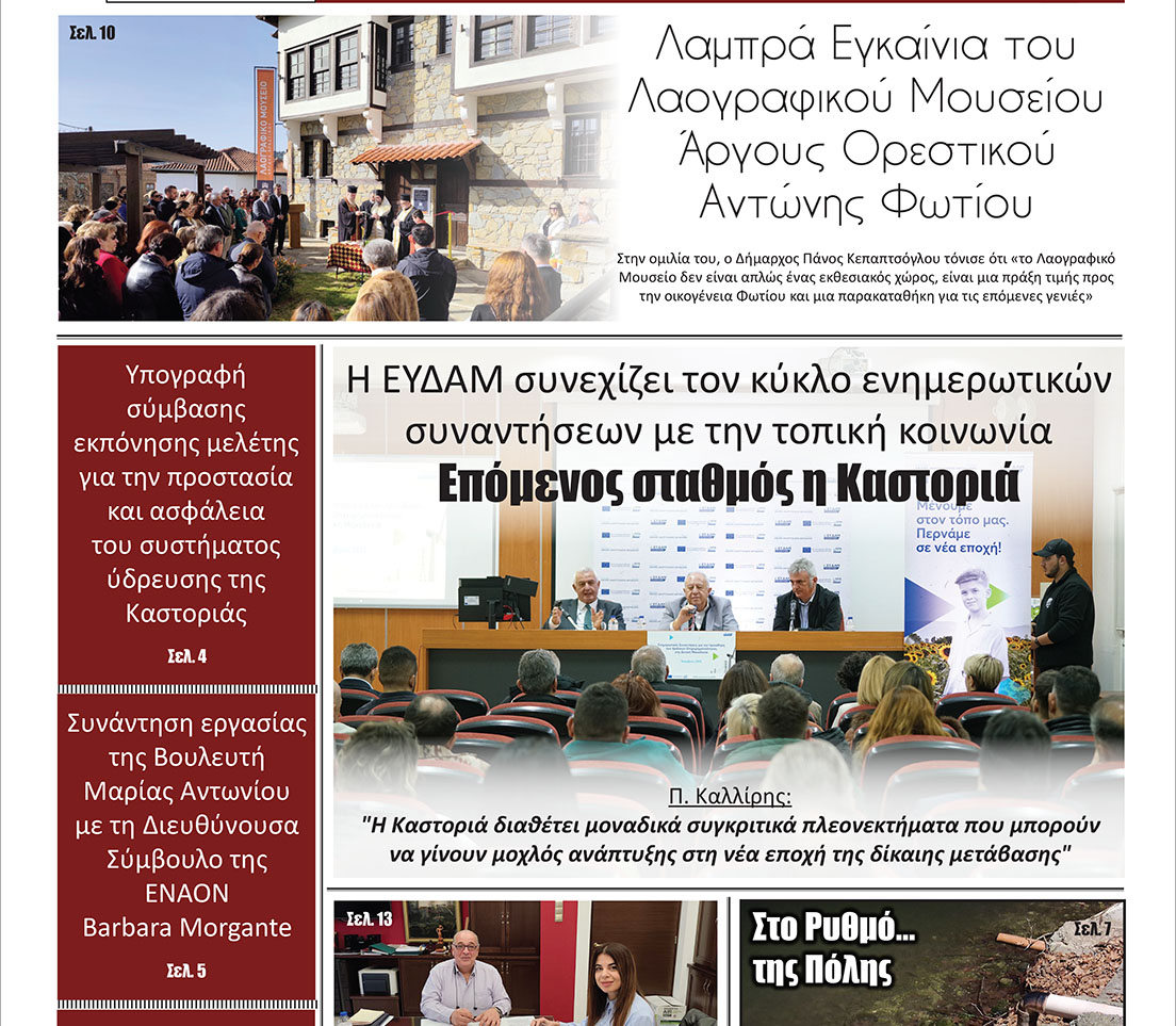 Από τη Δ.Ε.Υ.Α.Κ. ανακοινώνεται πως λόγω πλημμυρικών φαινομένων απαγορεύεται η κατανάλωση πόσιμου νερού στις Τοπικές Κοινότητες Πενταβρύσου, Αυγής και Υψηλού μέχρι την ολοκλήρωση των ελέγχων.