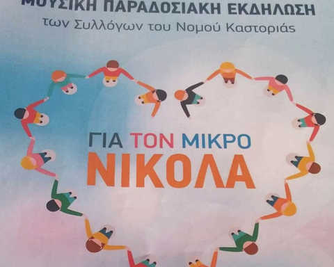 ΠερισσότεραΦιλανθρωπική μουσική παραδοσιακή εκδήλωση των Συλλόγων του Νομού Καστοριάς, για τον μικρό Νικόλα, θα πραγματοποιηθεί την Κυριακή 3 Ιουνίου,