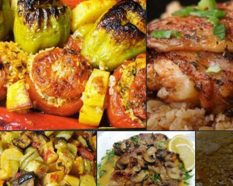 ΠερισσότεραΚαλημέρα Το μενού σήμερα Δευτέρα στις λιχουδιές : Γεμιστά λαδερά Φτερούγες με ρύζι Μπριάμ Μπριζόλες χοιρινές με μανιτάρια λεμονάτες Φακές