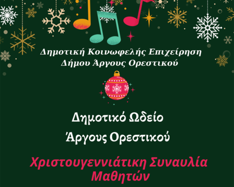 ΠερισσότεραΗ Δημοτική Κοινωφελής Επιχείρηση του Δήμου Άργους Ορεστικού σας προσκαλεί στη Χριστουγεννιάτικη Συναυλία των σπουδαστών του Δημοτικού Ωδείου, την Πέμπτη 22