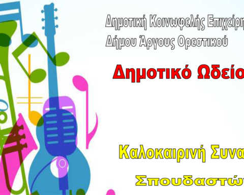 Η Δημοτική Κοινωφελής Επιχείρηση Δήμου Άργους Ορεστικού σας προσκαλεί στην Καλοκαιρινή Συναυλία των Σπουδαστών του Δημοτικού Ωδείου την Κυριακή