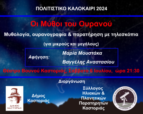 ΠερισσότεραΟ Σύλλογος Ηλιακών και Πλανητικών Παρατηρητών Καστοριάς, στο πλαίσιο των εκδηλώσεων “Πολιτιστικό Καλοκαίρι 2024”, που διοργανώνει ο Δήμος Καστοριάς, παρουσιάζει