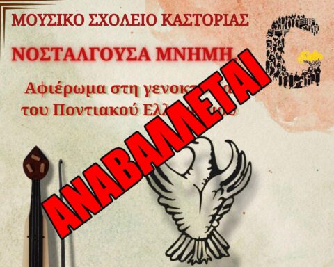 ΠερισσότεραΣας ενημερώνουμε ότι η προγραμματισμένη για σήμερα συναυλία του Μουσικού Σχολείου Καστοριάς, ¨Νοσταλγούσα Μνήμη…¨ , αφιέρωμα στη Γενοκτονία του Ποντιακού