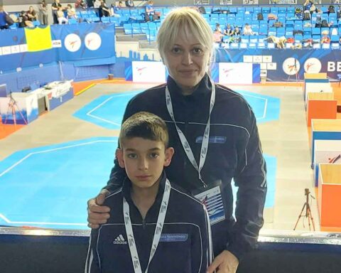 Στην πρώτη του εμφάνιση, με την καθοδήγηση της προπονήτριας του κ. Γιάννα Χρήστου, χωρίς καμία αγωνιστική εμπειρία, ο αθλητής μας