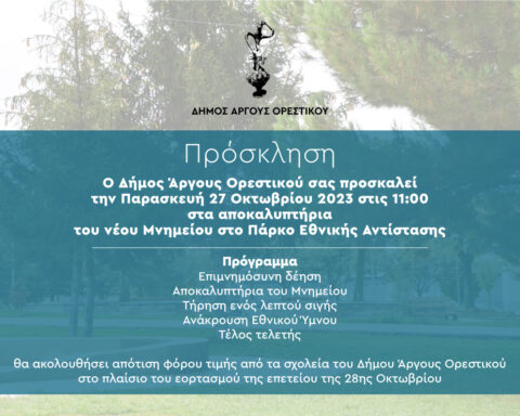 Στο πλαίσιο του εορτασμού της εθνικής επετείου της 28ης Οκτωβρίου ο Δήμος Καστοριάς και η Αντιδημαρχία Τουρισμού & Πολιτισμού διοργανώνει