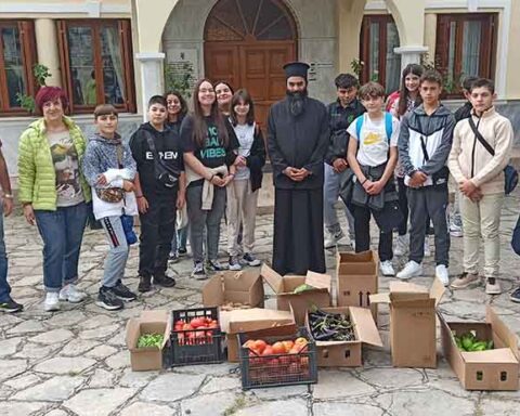 ΠερισσότεραΟι μαθητές και μαθήτριες του Γυμνασίου Οινόης προσφέρουν στην Τράπεζα Αγάπης της Ιεράς Μητρόπολης Καστοριάς τα λαχανικά που συνέλεξαν από