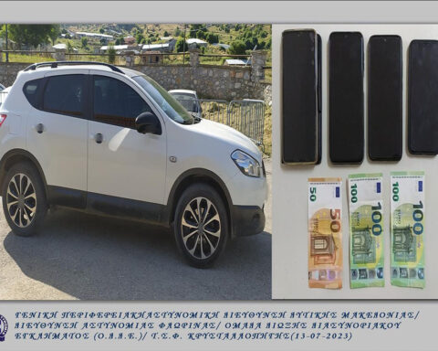 ΠερισσότεραΚατασχέθηκαν, το ανωτέρω Ι.Χ.Ε. όχημα, χρηματικό ποσό των -250- ευρώ και -4- κινητά τηλέφωνα. Συνελήφθη σήμερα (13-07-2023) τις πρώτες πρωινές