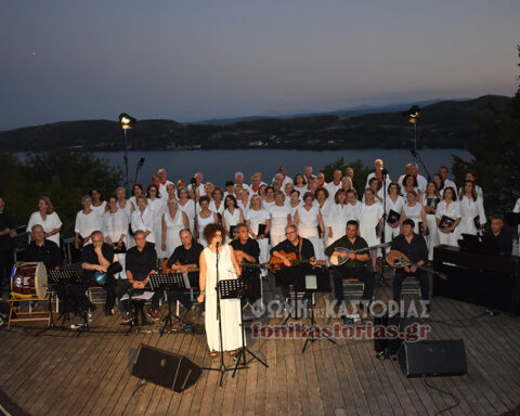 Μαγευτική η χθεσινή μουσική βραδιά στο κατάμεστο θέατρο βουνού της Καστοριάς. Η Λαϊκορεμπέτικη Χορωδία του Πολιτιστικού Συλλόγου «Αθαν. Χριστόπουλος», στο