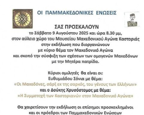 Δευτέρα (30-06-2025) και ώρες από 15:00 έως 22:00 ΔΡΟΜΟΛΟΓΙΟ: Καστοριά – Δισπηλιό – Μαυροχώρι – Πολυκάρπη – Τοιχιό – Μεταμόρφωση