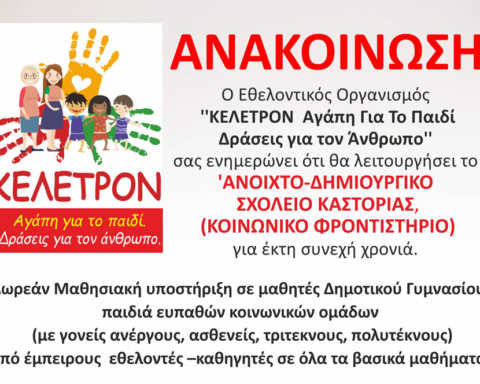 ΠερισσότεραΤο «ΚΕΛΕΤΡΟΝ Αγάπη για το Παιδί-Δράσεις για τον Άνθρωπο» για έκτη συνεχή χρονιά θα λειτουργήσει το «Ανοιχτό Δημιουργικό Σχολείο